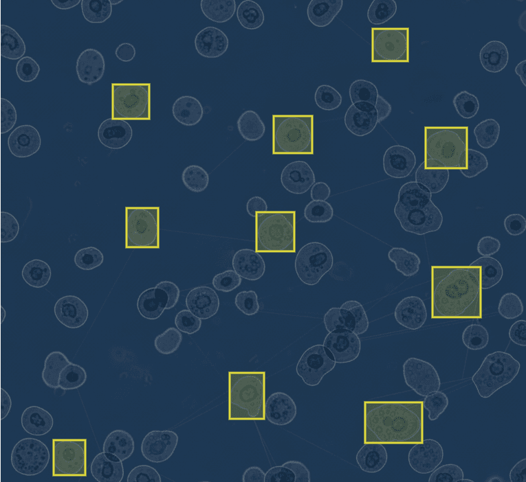 ✍️ Initial annotations: Researchers annotate a small subset of images to identify cells, organelles, or proteins